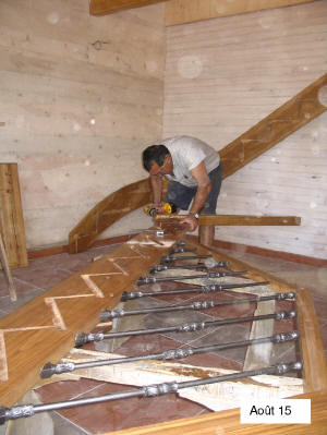 l'escalier bois au Tholonet, mettent en place l'escalier